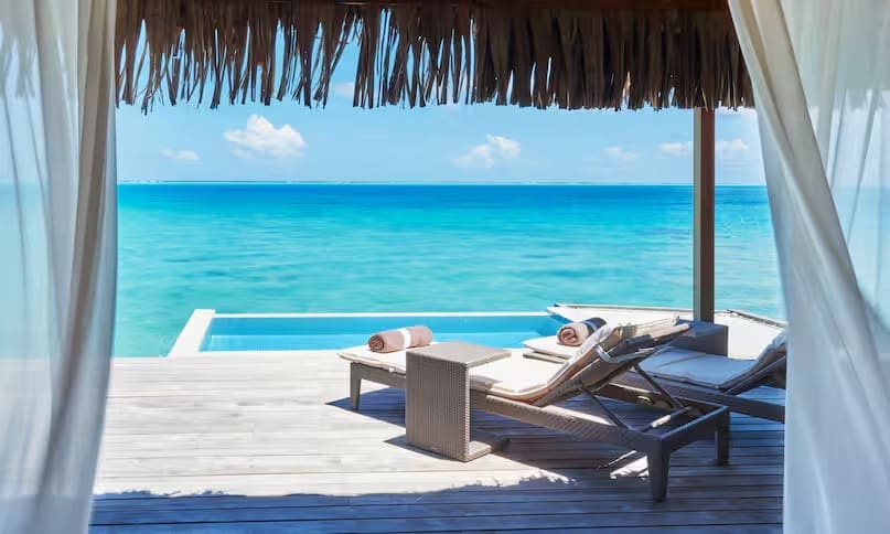 Couples can spend their days exploring the island on yacht excursions or curated private experiences, followed by evenings enjoying chef-driven gourmet dining that feels more like a fine restaurant than a traditional resort. The overall atmosphere feels calm, romantic, and effortlessly luxurious.